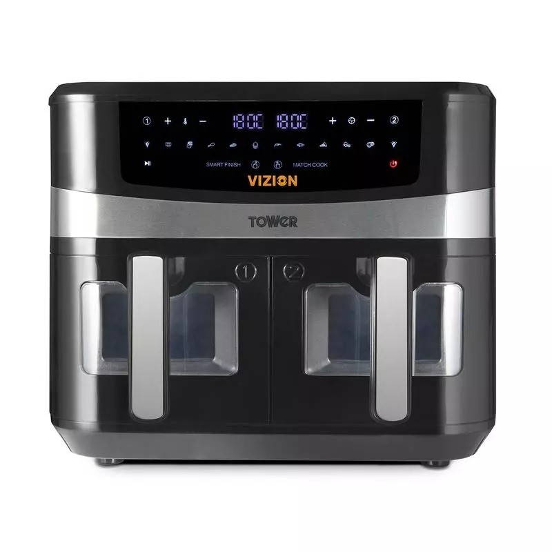 Vortx 9 Litre Dual Basket Air Fryer with Vizion Windows and Smart Finish